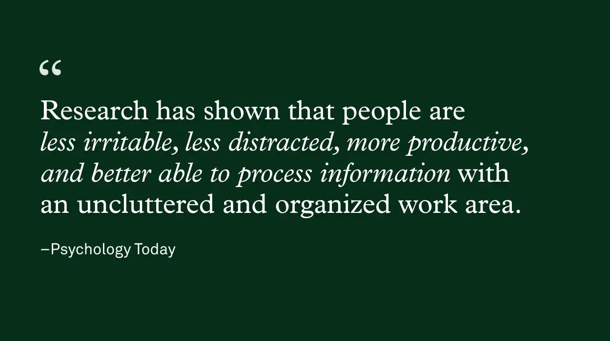 Less clutter correlates with less dust, less surfaces to clean, and a more comfortable space to move about and enjoy time with your loved ones. Research even proves that decluttering has many psychological benefits, like increased focus and productivity, and less irritability. If it doesn’t spark joy, let it go.