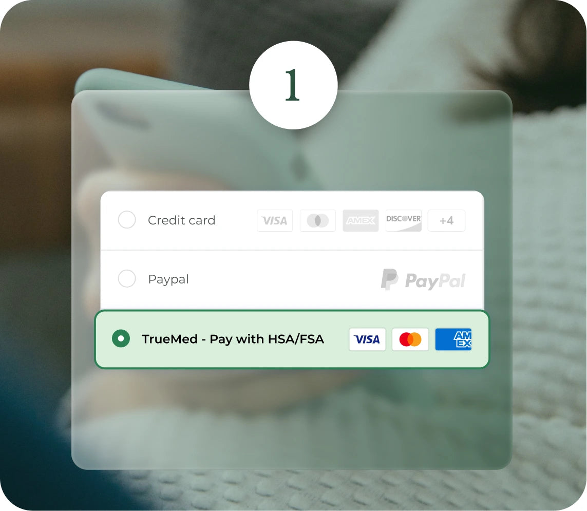 Do not pay with an HSA/FSA card during checkout. After your purchase, check your confirmation screen or receipt email for a link to the Truemed survey.