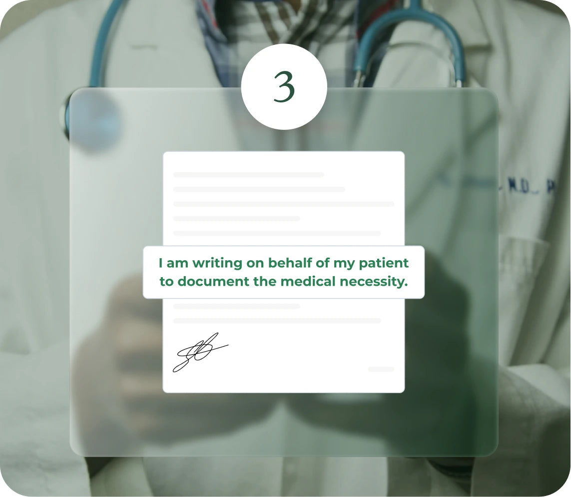 Take a private health survey. A licensed provider will review your answers to determine eligibility. If approved, you'll receive a Letter of Medical Necessity (LMN). Note: The survey must be taken on the same day as your purchase.