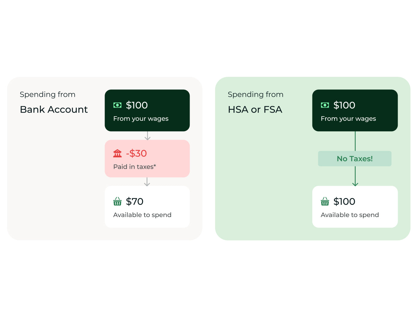 Because HSA/FSAs use pre-tax money, you’re getting more purchasing power for your dollars. Rather than pay taxes on income and then spend it on health items, qualified customers can use pre-tax funds to invest in root cause interventions.