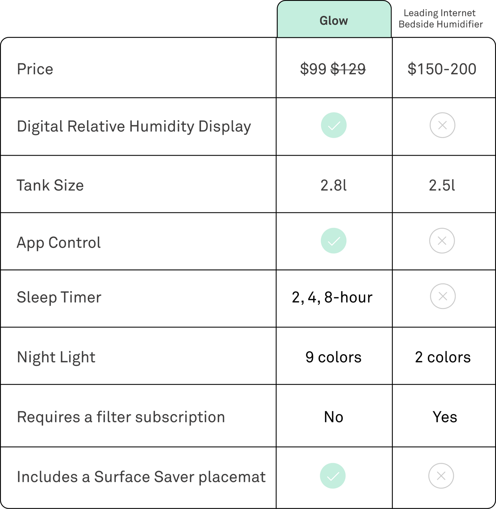 “I didn't realize how dry our house felt until we got Glow. My skin feels better, and I wake up less congested."
